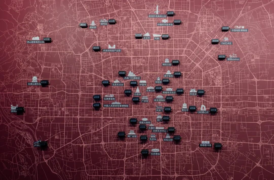 从历史声景转向当代创作,展区邀请读者从“旁观者”转变为“策展人”。巨大的北京城市地图上,“历史文化声景”“现代城市声景”“自然环境声景”三大类区域标注清晰,读者按下感兴趣区域的计数器,自己的选择将被纳入“北京声音采样计划”的组成部分,让中轴线的声音在新时代持续生长。