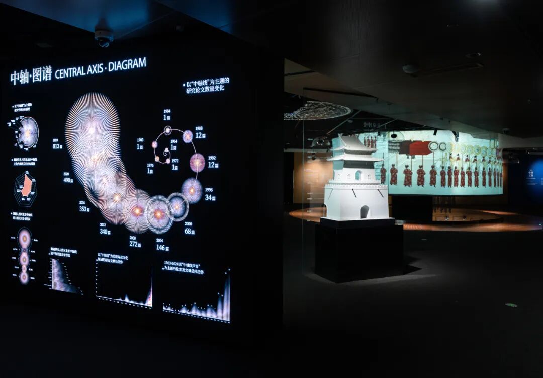 展览以“声音”为核心载体,打破传统视觉展览的边界,通过“天地之中”“礼乐中国”“中西互渐”“守中而进”四大板块,构建起一条从“感知时间”到“理解秩序”,从“文明互鉴”到“未来共创”的叙事脉络,完整呈现中轴线作为“文明活化石”的多维价值。