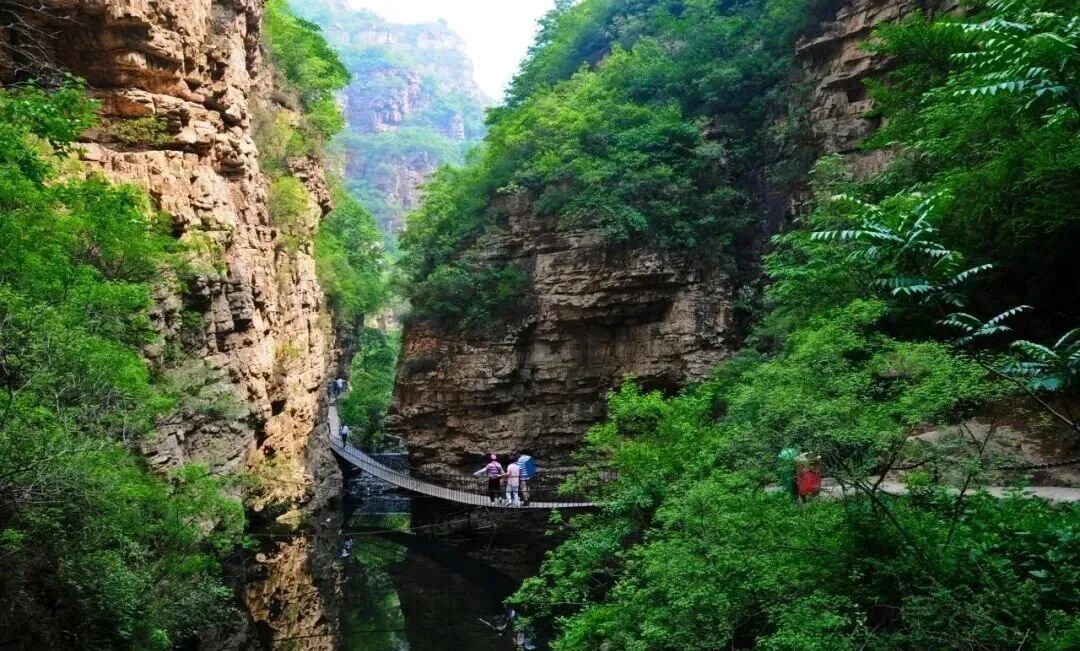 从峡谷顶峰的天池至峡谷入口的龙门湖