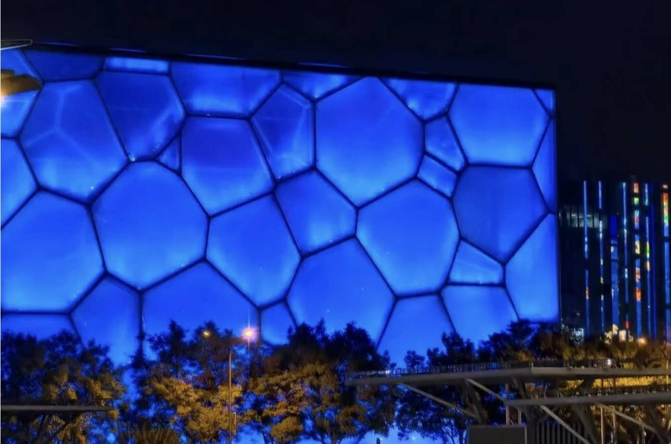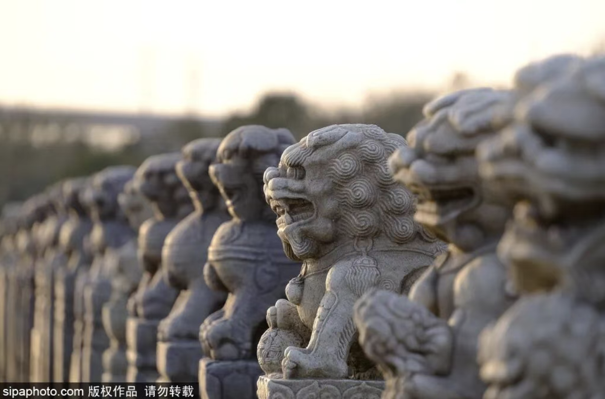 亮灯后的卢沟桥宛若金色长龙横跨永定河