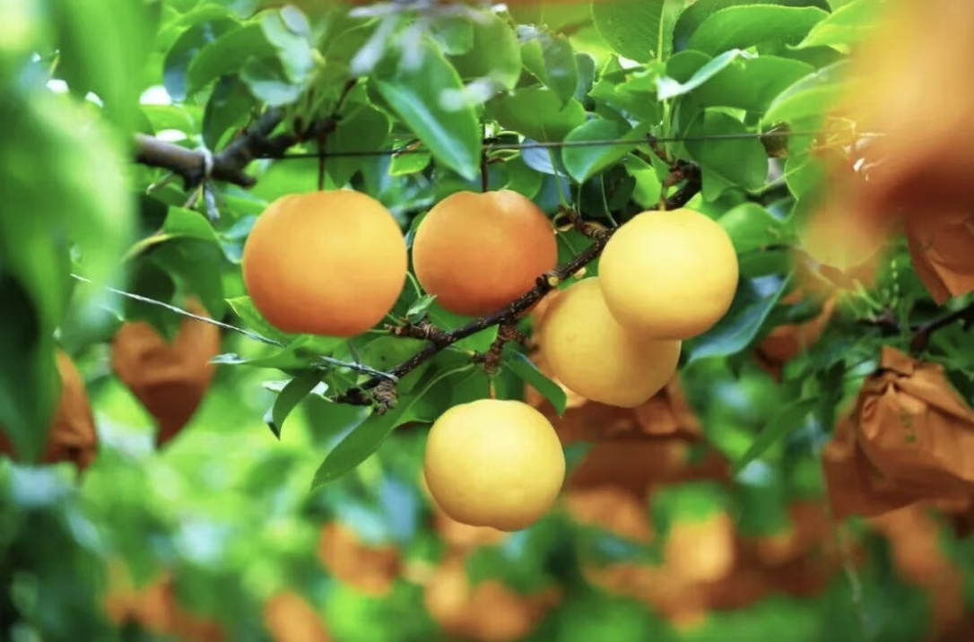 精心培育出黄金梨、水晶梨、