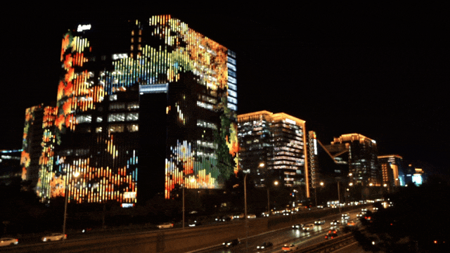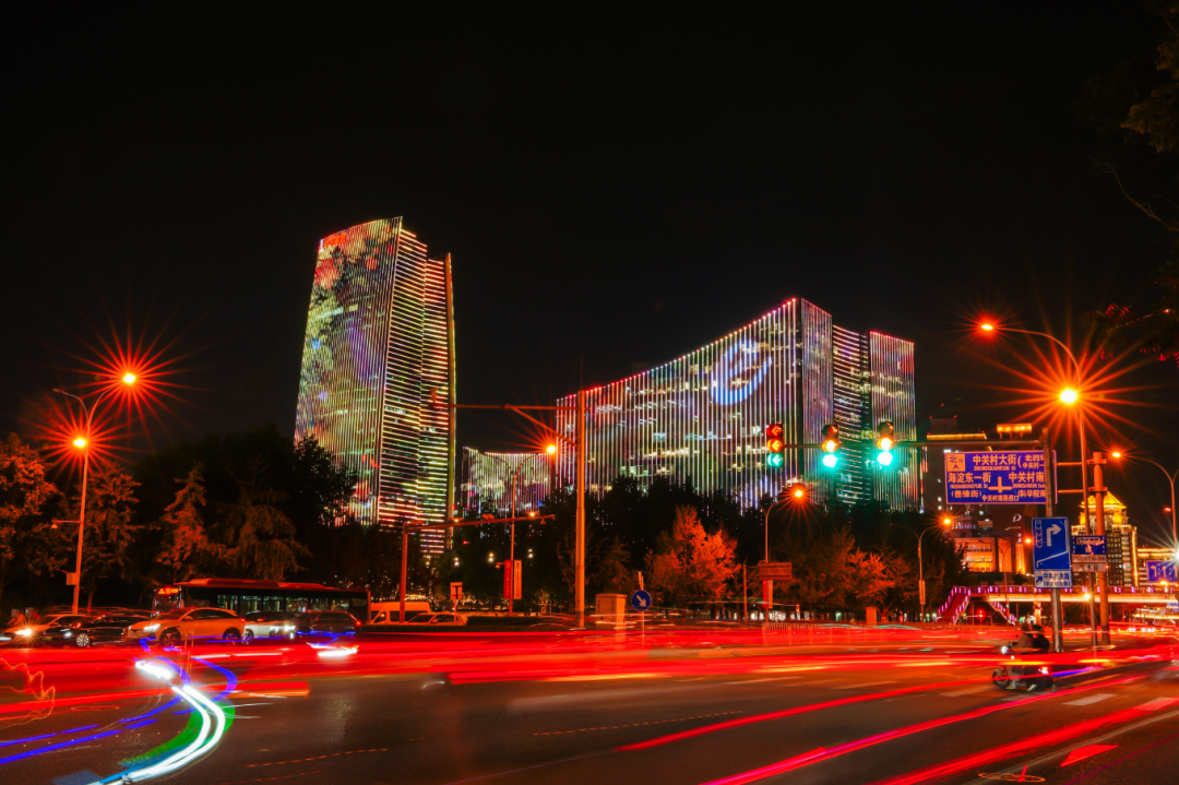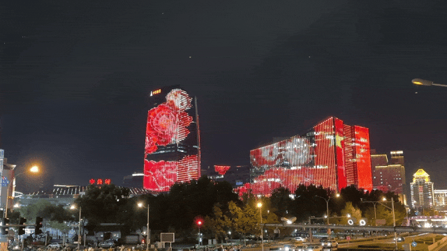 海淀区城市管理委广告景观管理科相关负责人介绍,此次国庆灯光秀以中关村广场组团建筑为核心载体,中钢大厦、E世界、鼎好AB座、数码、腾达大厦等建筑形成立面动画联动;而秋日枫叶动画与大街沿线19处建筑、11座天桥及双螺旋灯光氛围联动,呈现整条大街一台戏的效果。