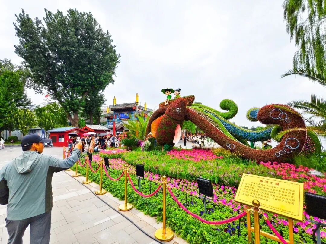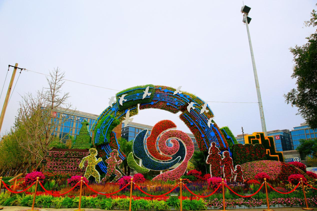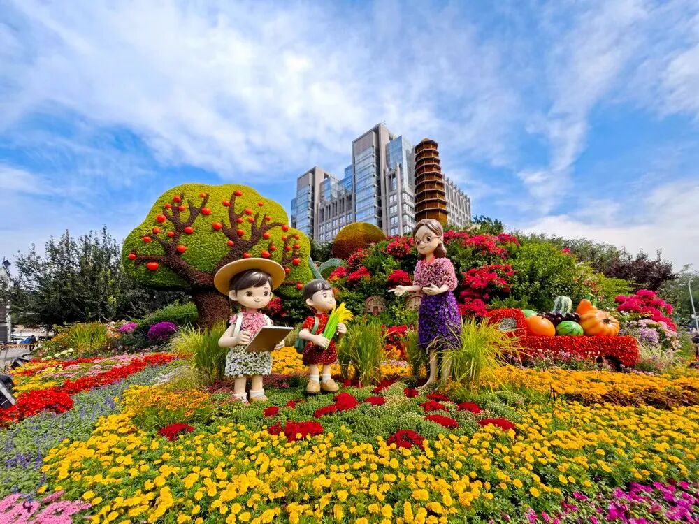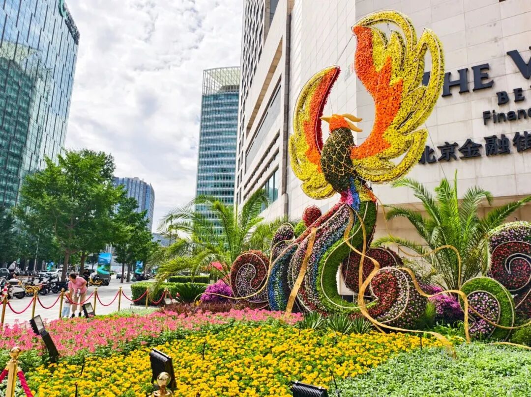 在金融街威斯汀大酒店东北角、菜市口东南角及什刹海荷花市场精心布置了3组以金凤呈祥、幸福西城、运河之端为主题的立体花坛,依场地文化特质融入节日元素,彰显“繁花似锦祝祖国,花漾生活绽新颜”的总体理念。