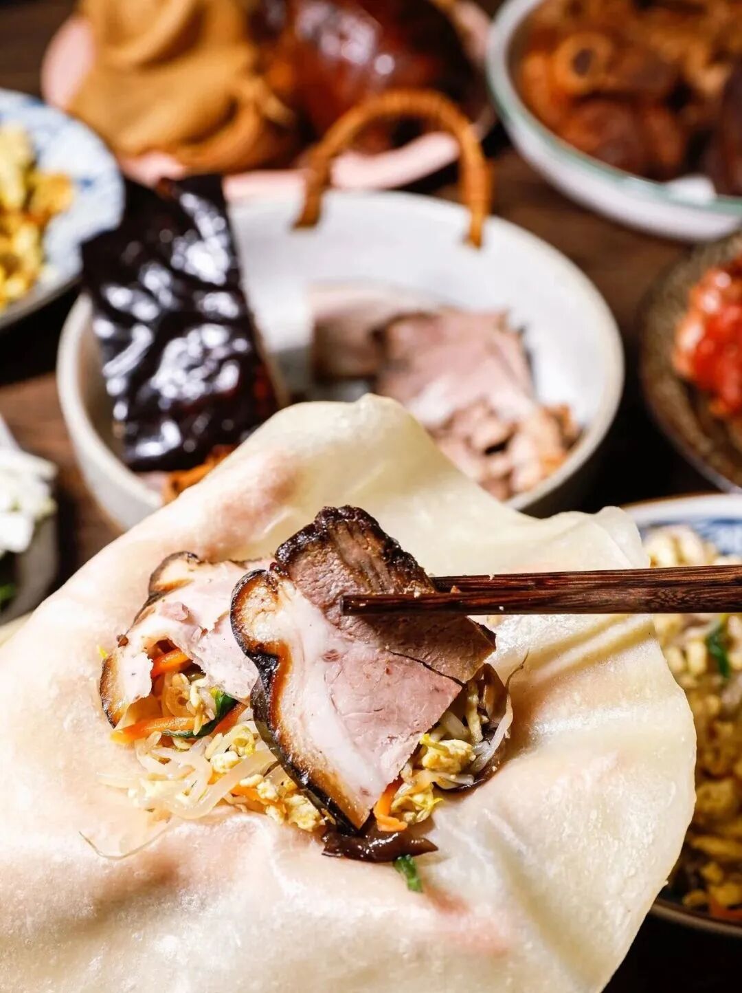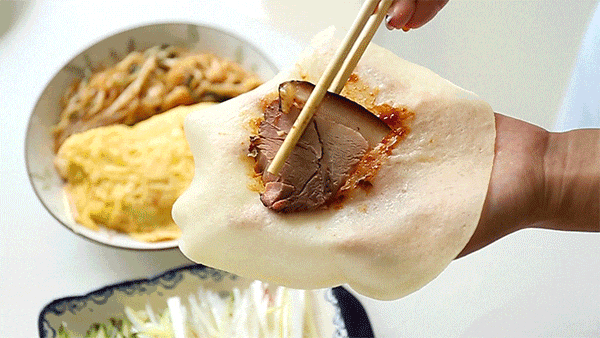 卷在荷叶饼中食用