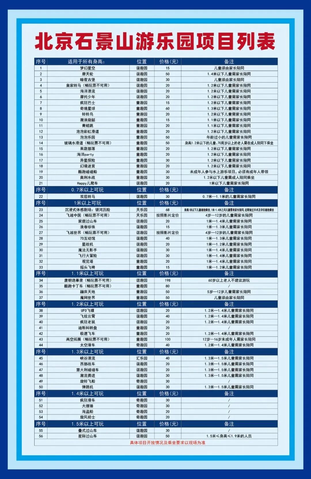 地点:石景山游乐园开放时间