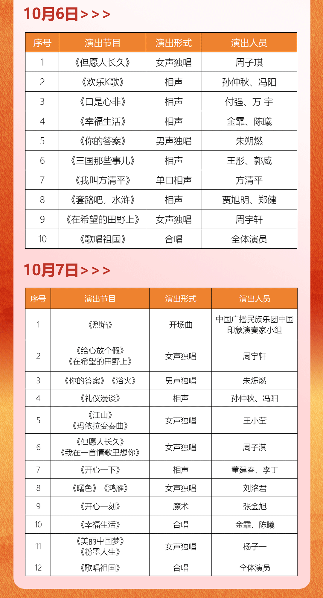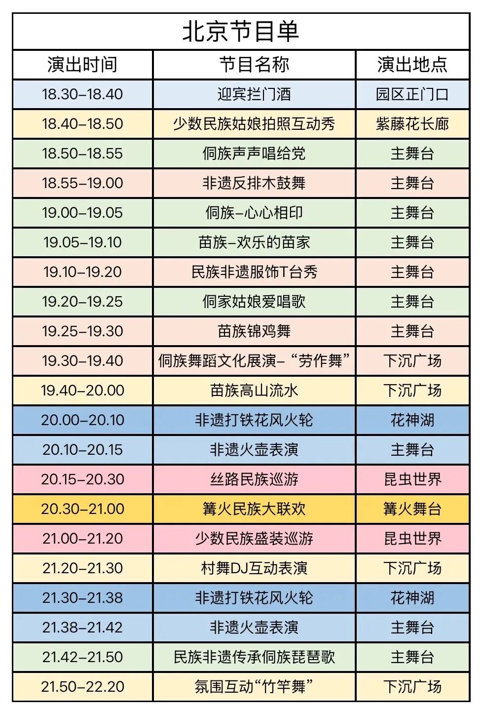 表演时间表