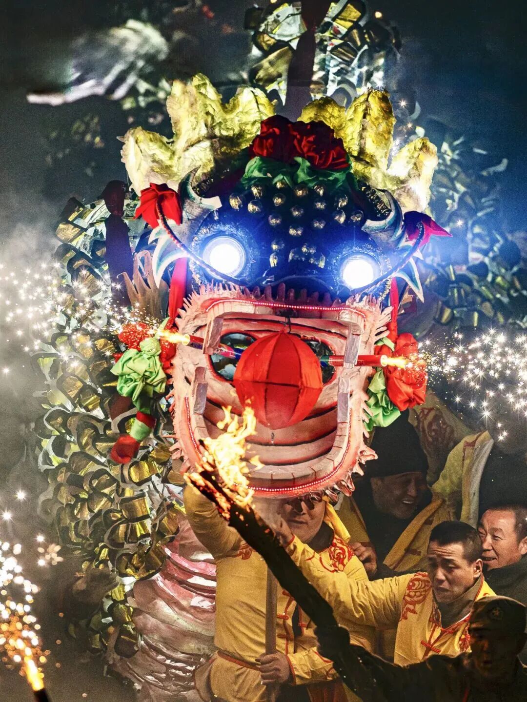 非遗传承人30+道工序纯手工打造专业鼓乐队现场伴奏22米长雌雄双龙舞动随鼓点腾挪翻转宛如真龙降世!