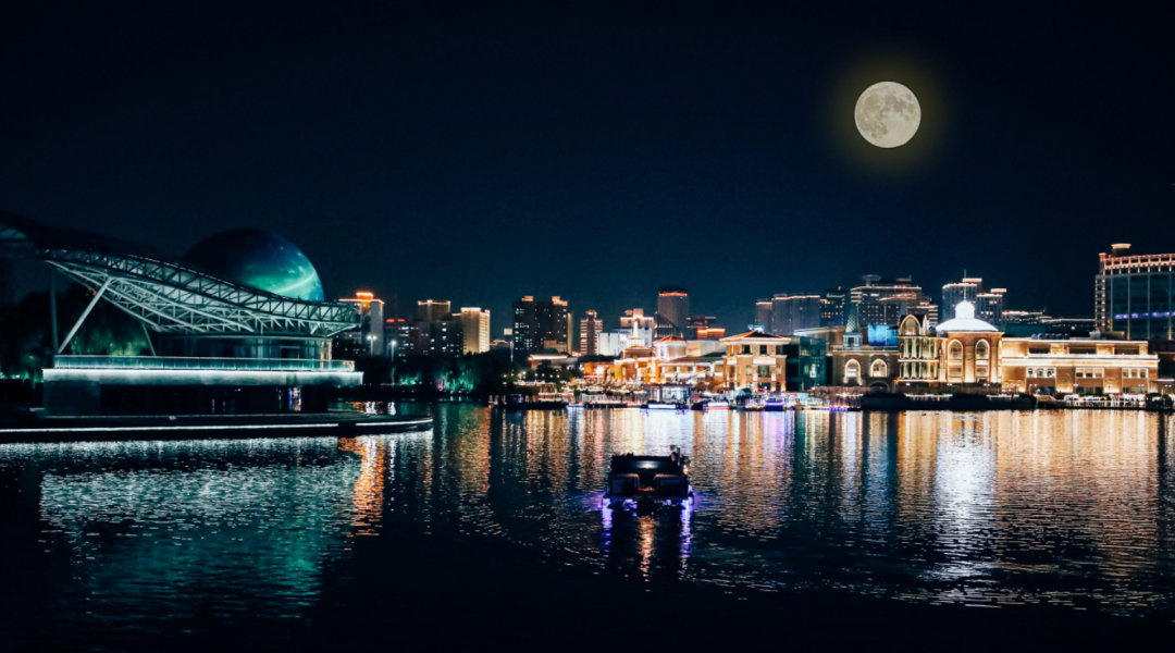 亮马河这条穿越都市的河流在中秋之夜显得格外迷人。游船慢行于河面之上“披着”月光欣赏沿岸的灯光演绎绝对是这个中秋最浪漫的夜游体验。