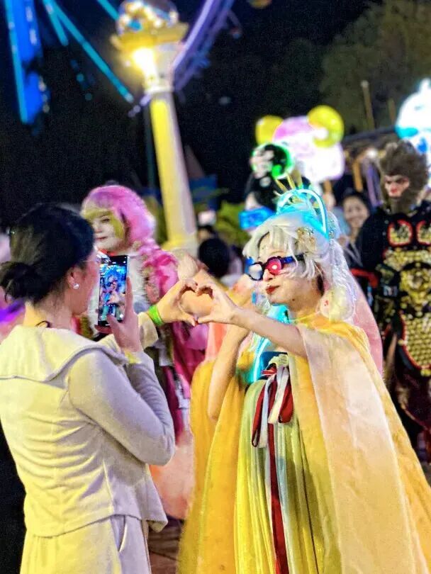 告别蘑菇林“昆虫王国”生机扑面,“蝴蝶”“蜻蜓”振翅枝间“蝉鸣”织就夜曲。设计师用香氛系统送泥土草木香搭配音效打造全感官沉浸。正如主创所言游客不是旁观者是灯光秀的共创者。