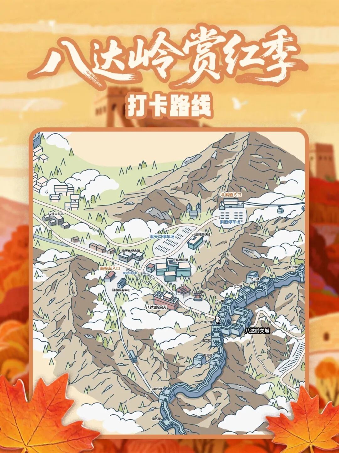 1.步行登城:八达岭长城主登城口关城登城可选择南、北线路攀登,红叶最佳观赏点位:北线四至八楼、南线四至七楼。