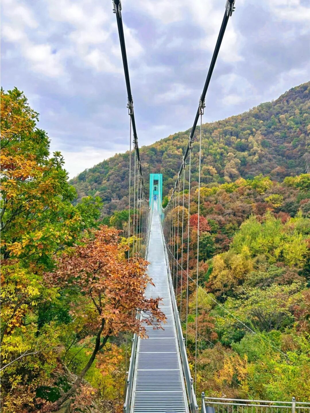 雨天过后,山顶云雾弥漫,愈发衬托出彩叶的缤纷之美,走在山谷间的浮云桥上,整片山谷的秋色尽收眼底。