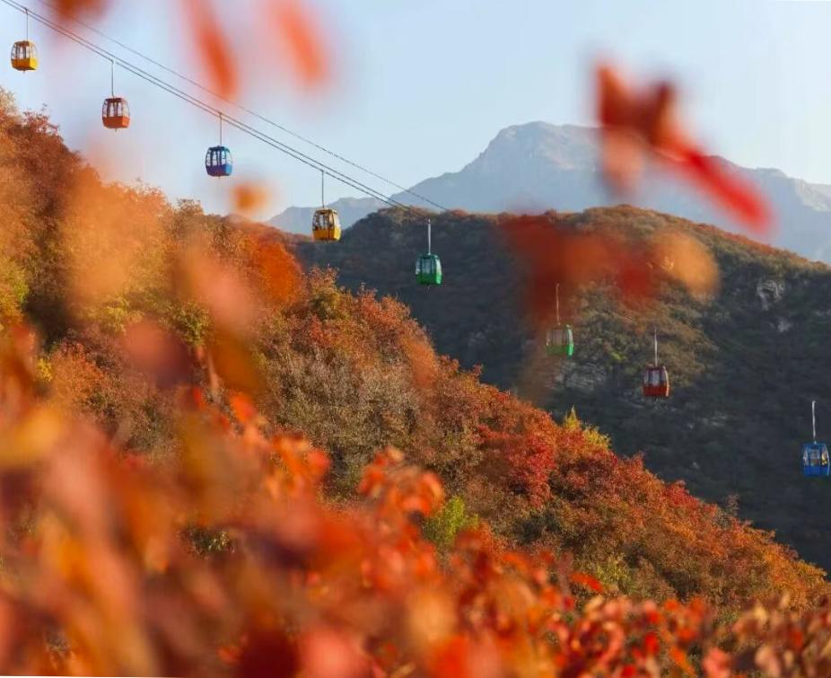3.南城专线:乘坐南线地面缆车直达南四楼观赏点位,可继续攀登至南七楼点位观赏长城红叶,可选择南线地面缆车双程票或单程地面缆车登城步行下城。
