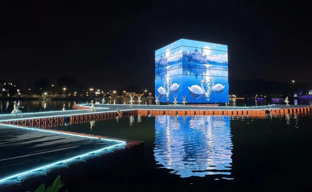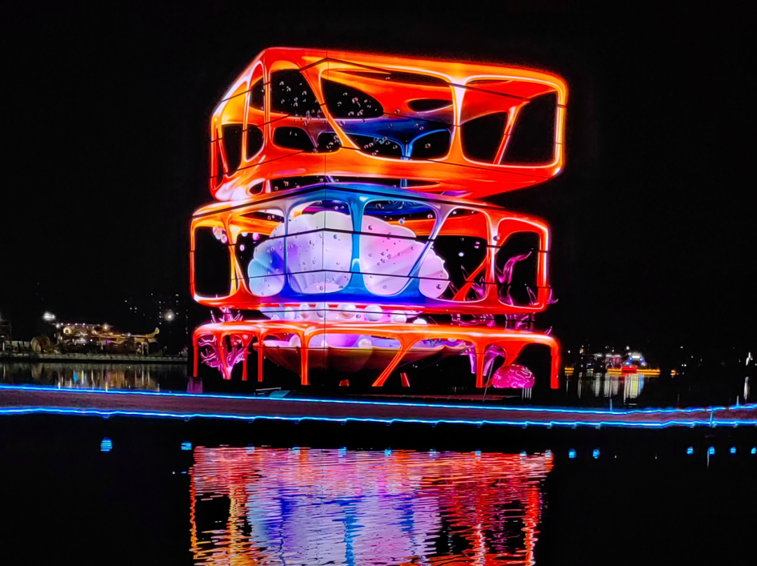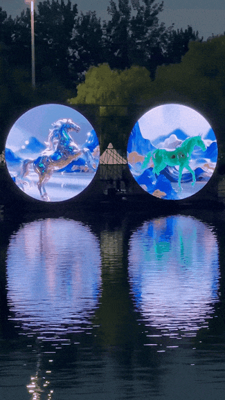 大型新媒体交互艺术装置——朝阳公园北湖上的“魔方”,由直径13.5米的巨型立方体及水上浮动环形平台组成,一键切换剧场/秀场/展演场,3D裸眼光影开启“盲盒现场”,把闪耀、苍穹、乐园、魔方的主题意境写进万千水岸生活。又如“奇幻摩球”依托球幕投影与互动LED,把三座球体变为会呼吸的动态宇宙,让工业遗存化身超现实艺术星球,尽显朝阳数字文化经济活力。
