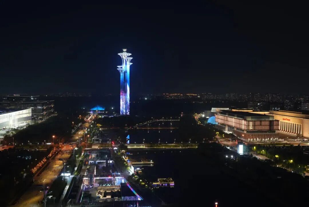 奥林匹克中心区以“荣耀共振”为主题,推出山、水、塔、轴“四秀”联动:奥林匹克塔化身360°光影载体,与奥森“山秀”、奥海“水秀”、中轴北延长线奥森南门广场“轴秀”呼应,带给市民游客超炫酷的艺术享受。