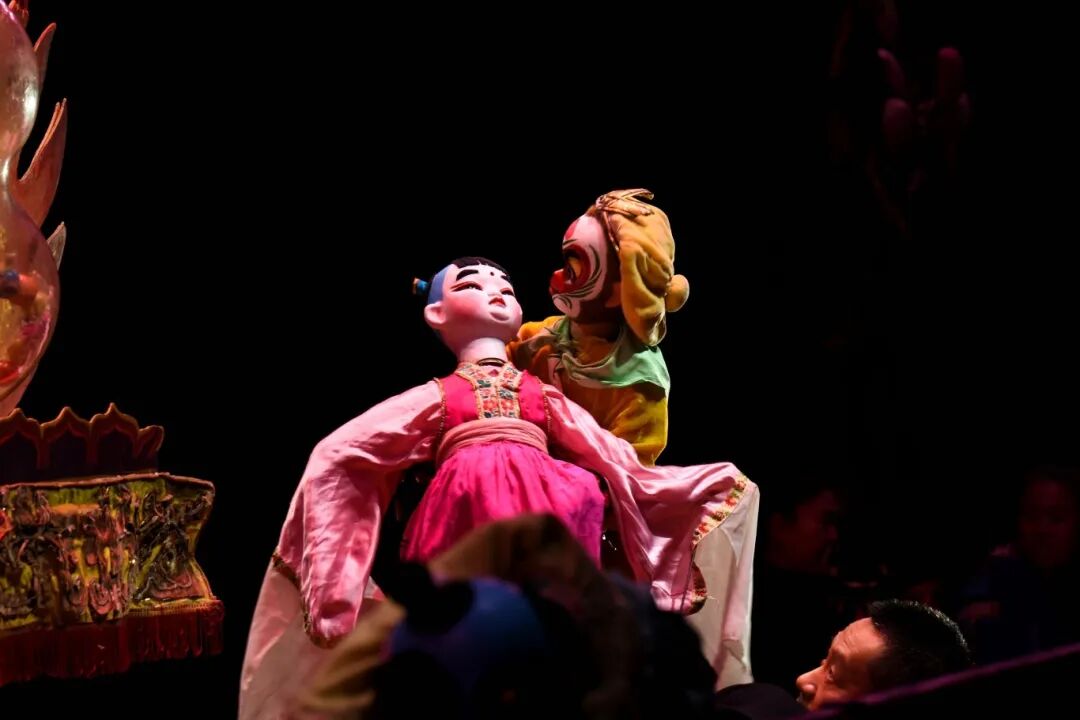 剧中忽而变蛇、变鱼,瞬间化虎、成庙,突然变高的金箍棒,随意从树上摘取的蟠桃,体现了精湛的木偶技艺。