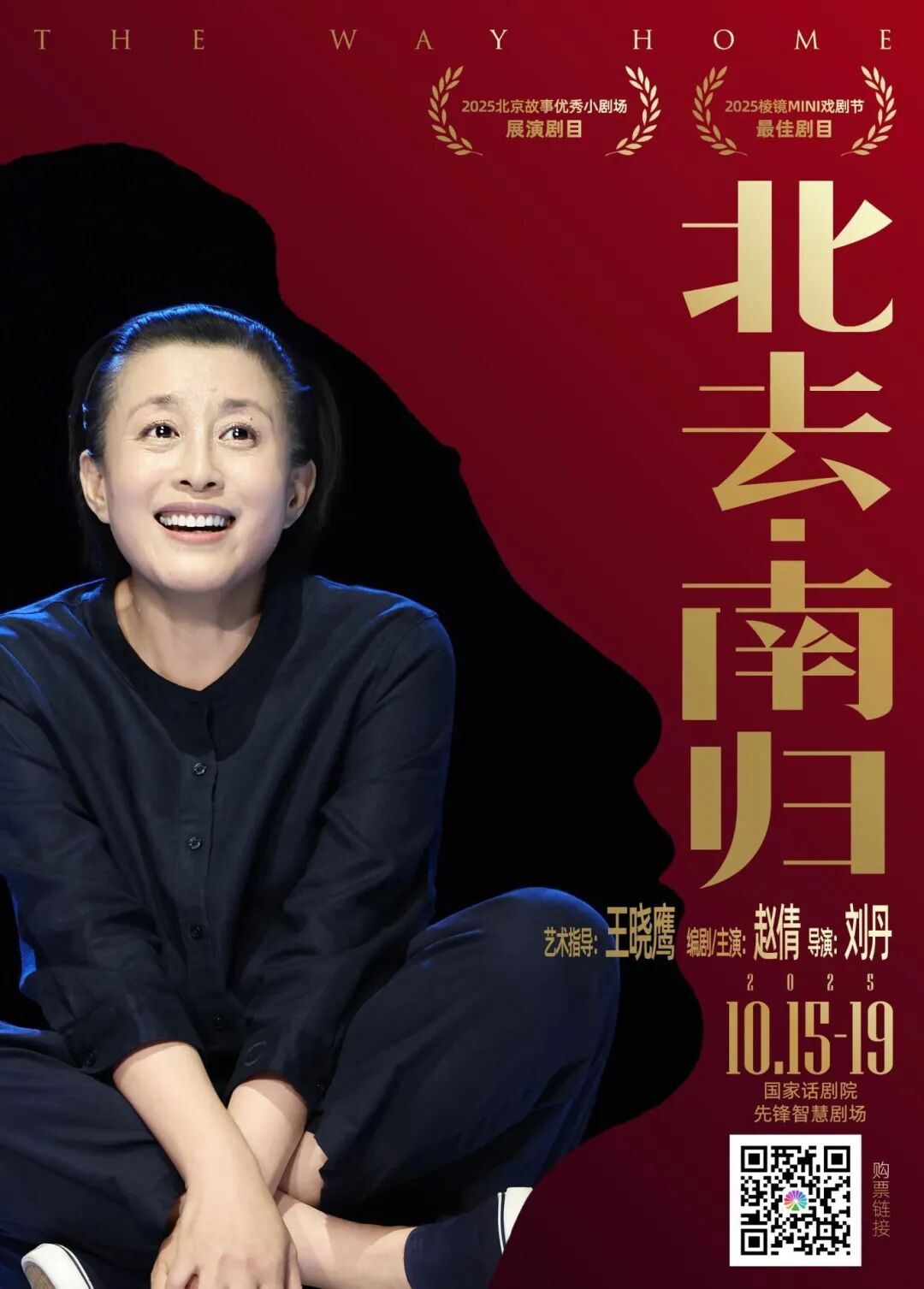 话剧《北去·南归》由演员赵倩自编自演,著名导演王晓鹰担任艺术指导,主创团队集结了导演刘丹、灯光设计王琦等7位国家话剧院优秀艺术家。该剧首轮演出即受到了业内及观众的一致盛赞,被业内评价为“现象级话剧作品”,被观众评价为“小剧场独角戏的天花板”,演出中更是出现了一票难求的现象。今年5月该剧获得2025北京棱镜MINI戏剧节“最佳剧目奖”,并被北京市文化和旅游局评选为“2025北京故事优秀小剧场剧目展演”作品。