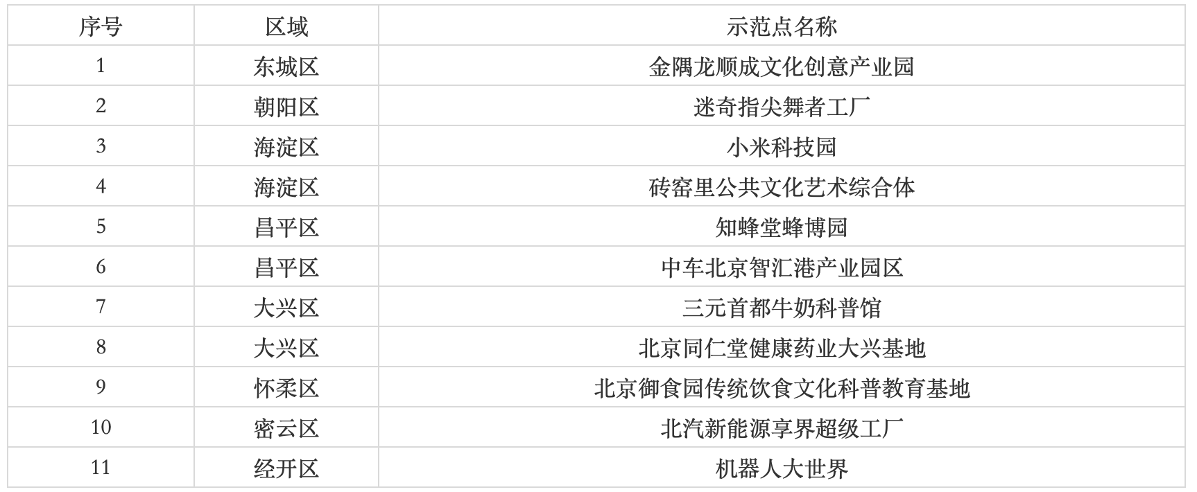按照《国家工业旅游示范基地规范与评价》(LB/T067-2017)行业标准及《工业旅游区(点)服务基本要求》(DB11/T 665-2021)地方标准,北京市文化和旅游局会同北京市经济和信息化局按程序组织专家评审,拟推出金隅龙顺成文化创意产业园等11家北京市工业旅游示范点,现予以公示。