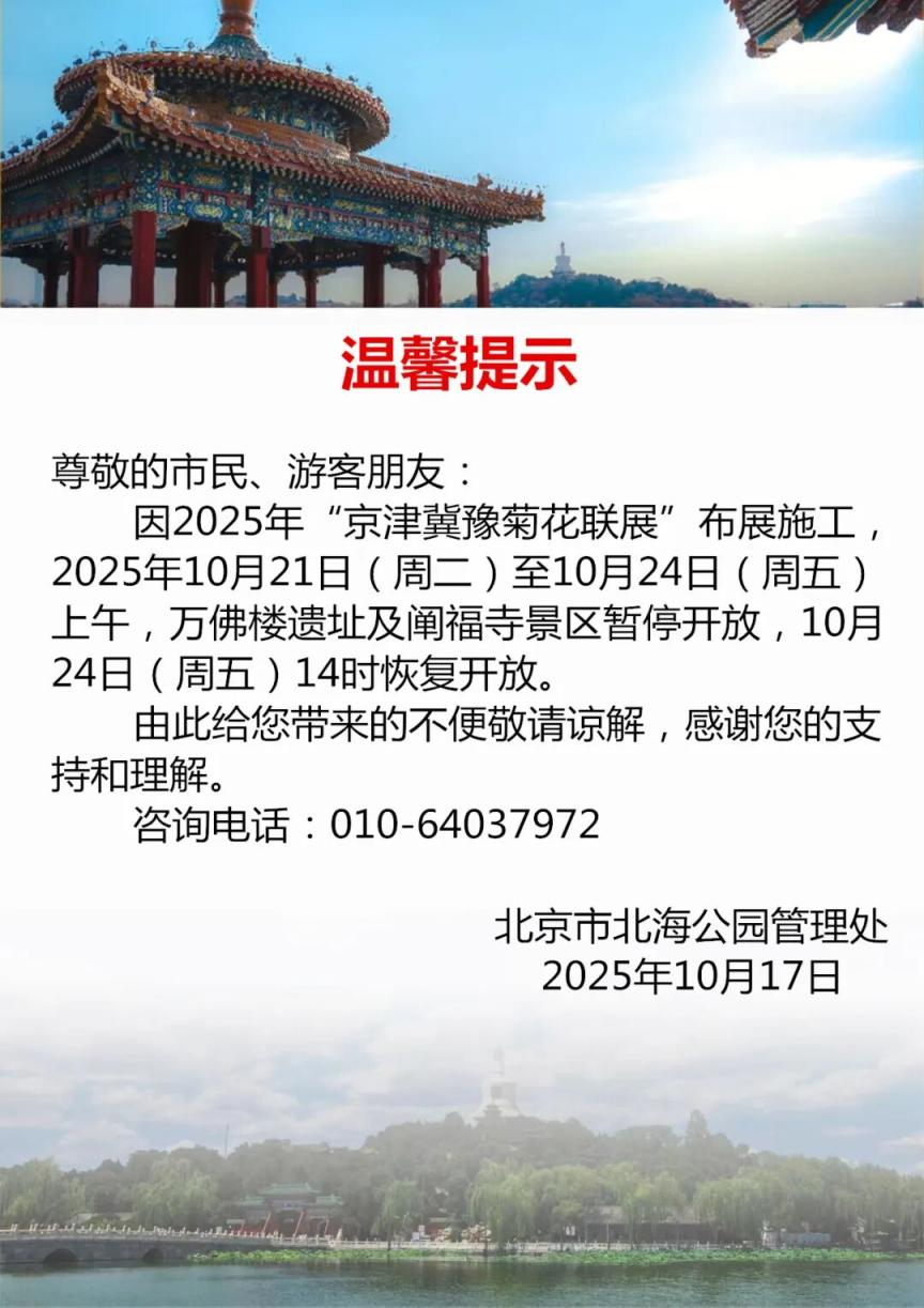 北海公园万佛楼遗址及阐福寺景区暂停开放