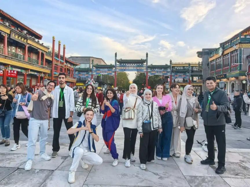 短短六天,阿拉伯大V们不仅深度体验了北京,更与中国文化产生了奇妙的化学反应。埃及记者Ahamed流利地秀出中文绕口令“吃葡萄不吐葡萄皮”;巴林的Hamed俨然成了“中国通”,一句“老铁们,点赞加关注”逗乐众人;沙特阿拉伯的Ammar更是学会了“我要可乐”“我要水”这样的实用语句,并在临别时深情说道:“谢谢中国,下次还来!”这些生动细节,正是“民心相通”最真实、最动人的体现。
