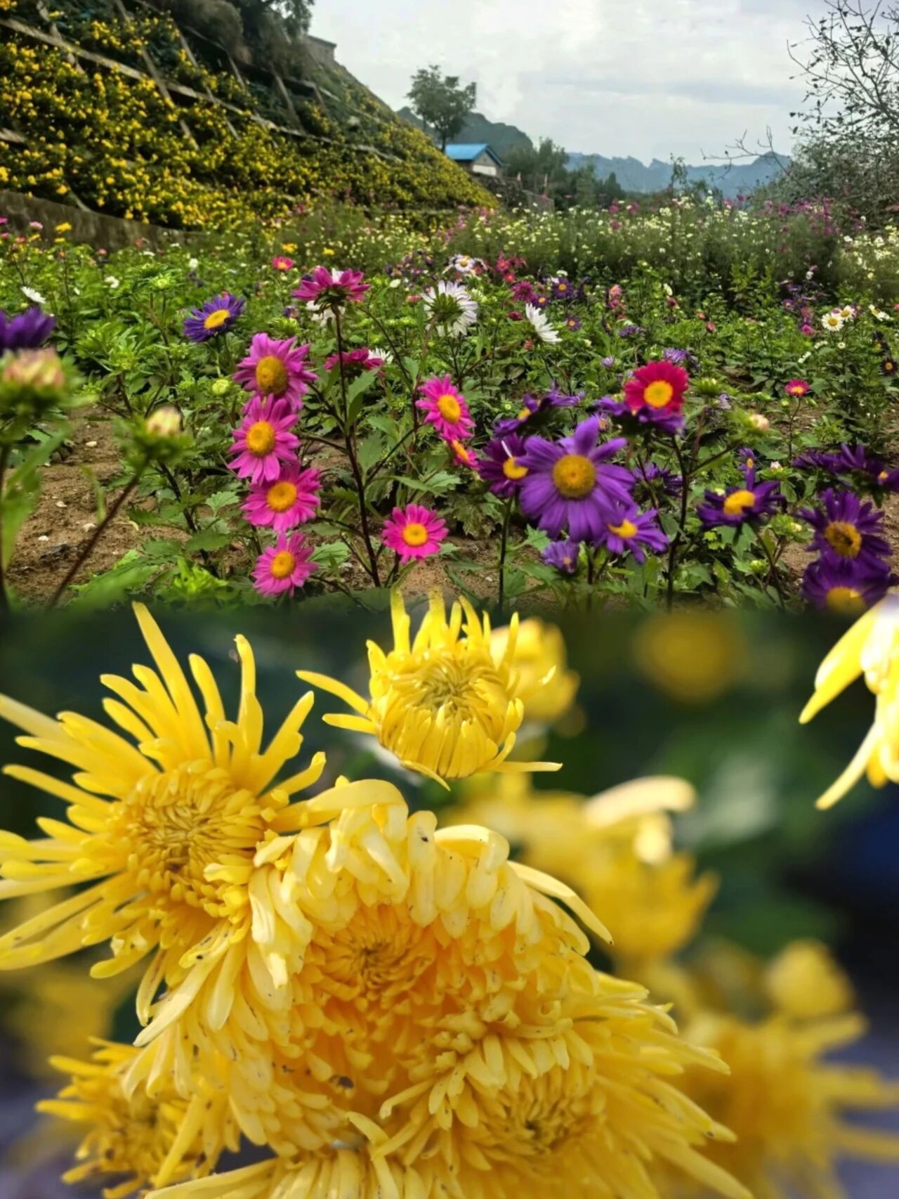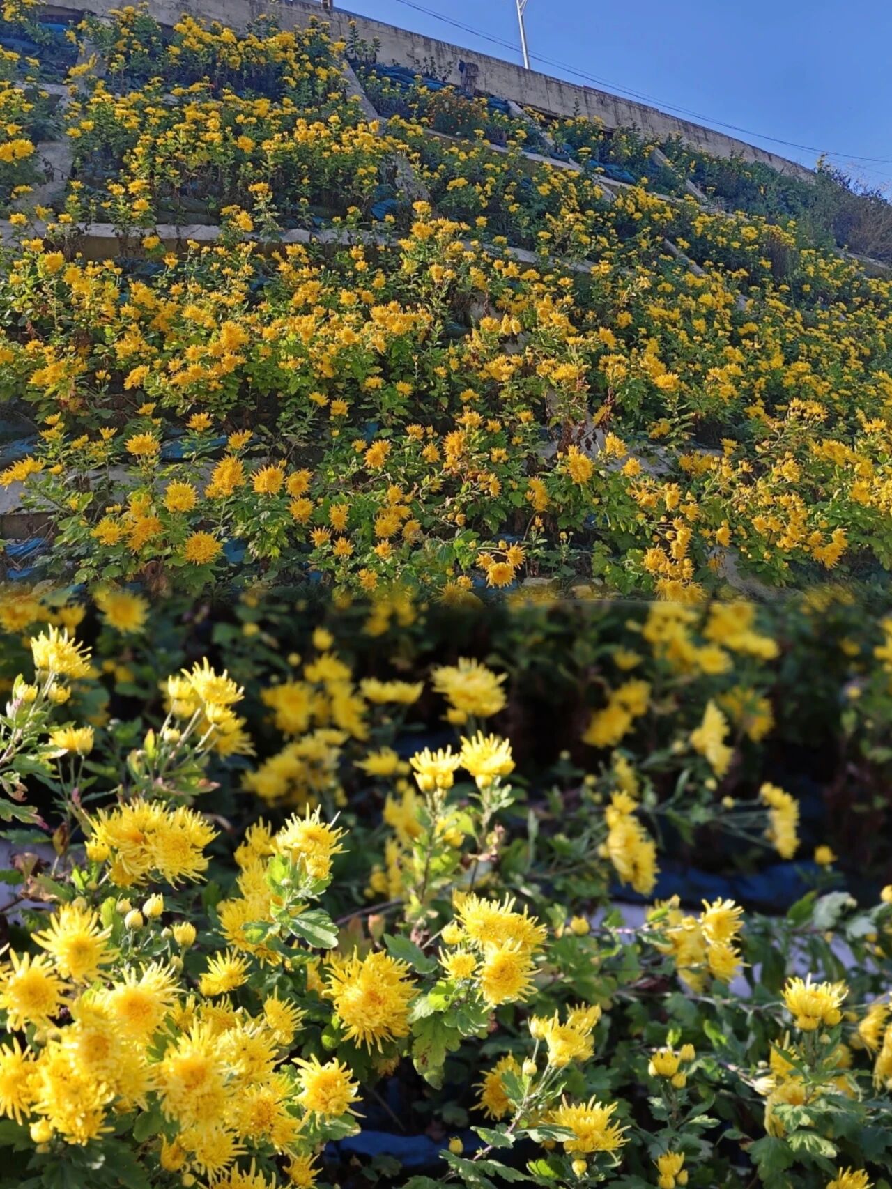 房山区河北镇大南山脚下,17万株金丝皇菊进入盛花期,堪称“花海”,如同一条条金黄的彩带镶嵌在口儿村的屋舍山野之间。还有精心布置的彩菊花园,特别适合拍照打卡!特别推荐两处打卡点位如上图。(图源:北京房山)