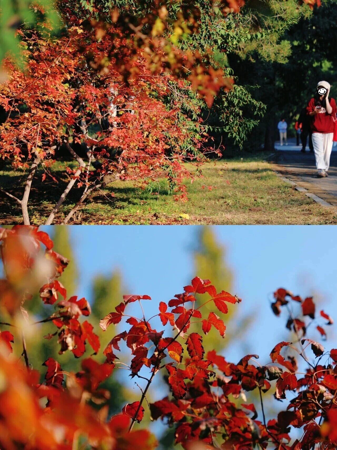 随着天气渐凉,国家植物园的斑斓秋色拉开序幕。在尚有绿意的林间,茶条槭猝不及防地变成一抹热烈而醇厚的红色,撞入人们眼帘;秋紫白蜡也在10月中旬至下旬迎来观赏期,变为紫红色。(图源:国家植物园)