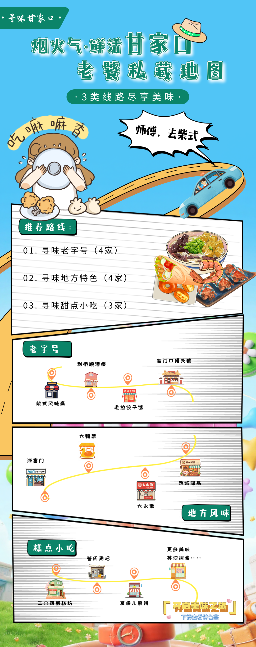 今日『烟火气·鲜活甘家口』发布“老饕私藏地图”,分老字号、地方特色、甜点小吃三大脉络,带你吃遍这里的“舌尖记忆” (下附独家手绘地图)。
