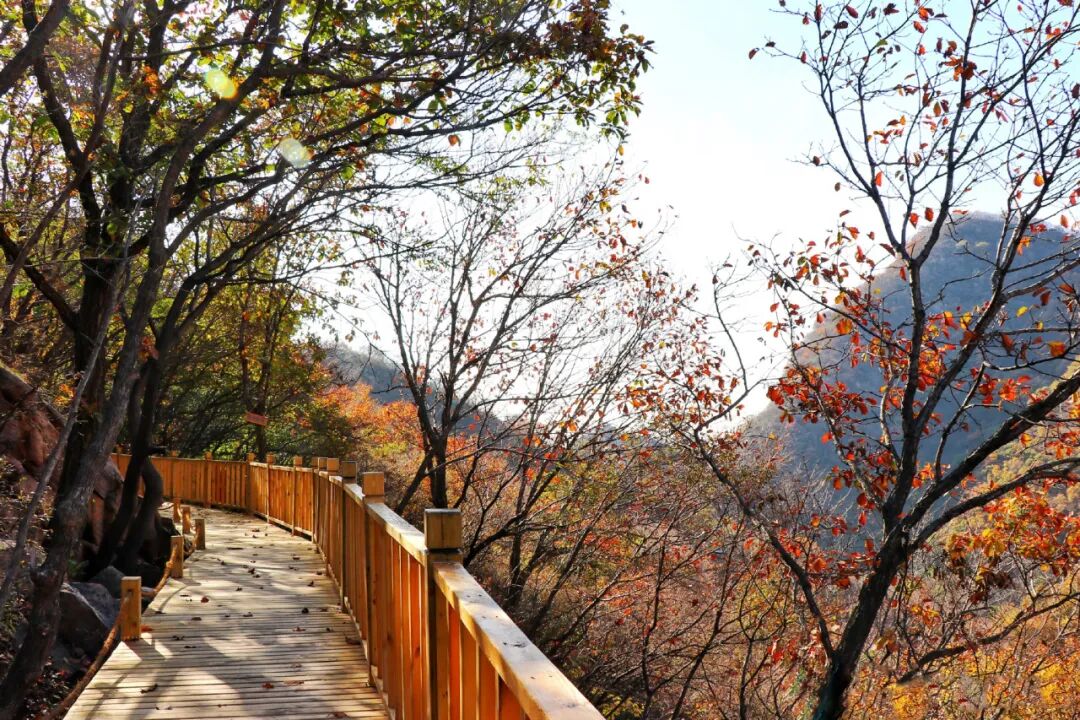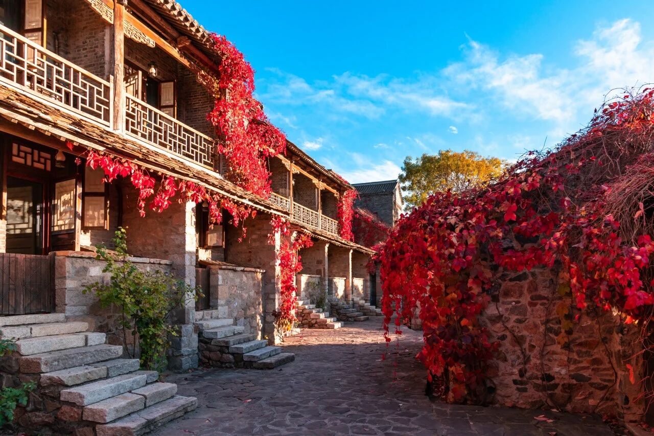 秋日的微风不仅吹散了燥热烦闷,还带来了秋赏红叶的多样玩法。古北水镇汤河湖边两岸的五叶爬山虎层层晕染,在阳光的温柔轻抚下,渐渐烤成热烈的红色,让整个水镇都沉浸在浓烈而温暖的氛围中。在这里,超过30余项精彩演出每日轮番上演,15处核心红叶打卡点位任您挑选,您还能深度体验可观、可感、可参与的国风美学与生活方式,在古北水镇迎接一场盛大而浪漫的红叶之约。云蒙山景区地处密云水库西侧,森林覆盖率达90%,有天然氧吧之称。景区内可供游人观赏的红叶面积达两万三千余亩,每年10月中旬起,树叶开始变化,气温越低,红叶到来时间越早。奇石之上,丹枫似火;云海之中,红叶如霞。行走在红叶形成的林海之间,满目秋意。秋日的云峰山风景区,山光秀丽、气候宜人,三步一景、文物荟萃,庙宇与森林呼应和谐;古道徒步,登高远眺,密云水库一碧万顷、烟波浩淼;金秋时节,黄芦、枫叶随风飘舞,坐在童话树屋中,品茶赏秋,尽享醉美枫红时光。