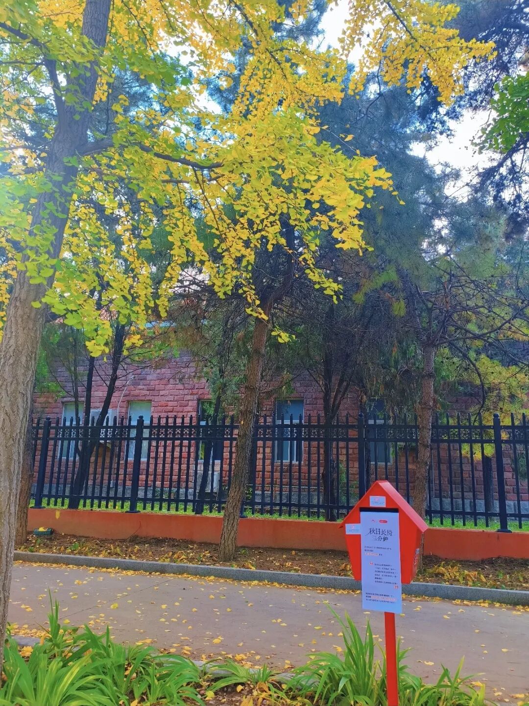 银杏大道路旁安置了红色邮筒