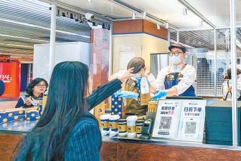 乘客在地铁站里也能买咖啡了!昨天,1号线国贸站出站闸机旁,北京地铁首家瑞幸咖啡正式投入运营。乘客出闸机后即可以扫码下单,购买到新鲜制作的热美式、拿铁和奶茶等饮品。