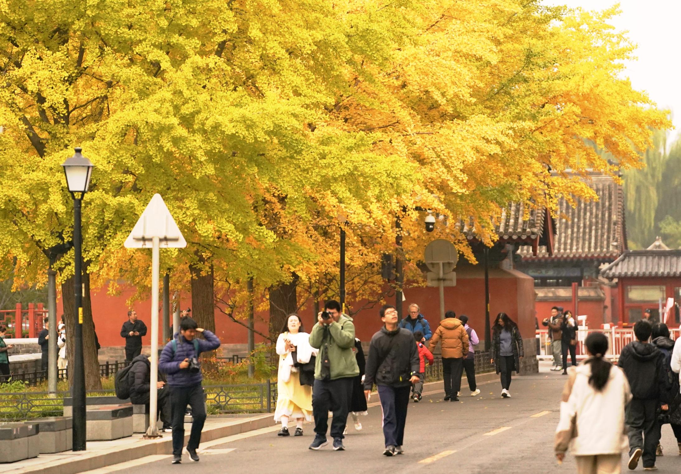 近日,筒子河畔已是秋意浓深。金黄的银杏叶随风轻摇,层层叠叠映衬着宫墙与琉璃瓦,勾勒出一幅兼具历史厚重与自然灵秀的秋日画卷。