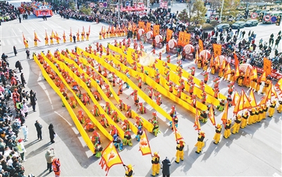 晋中民间社火表演,吸引众多游客前来观看。