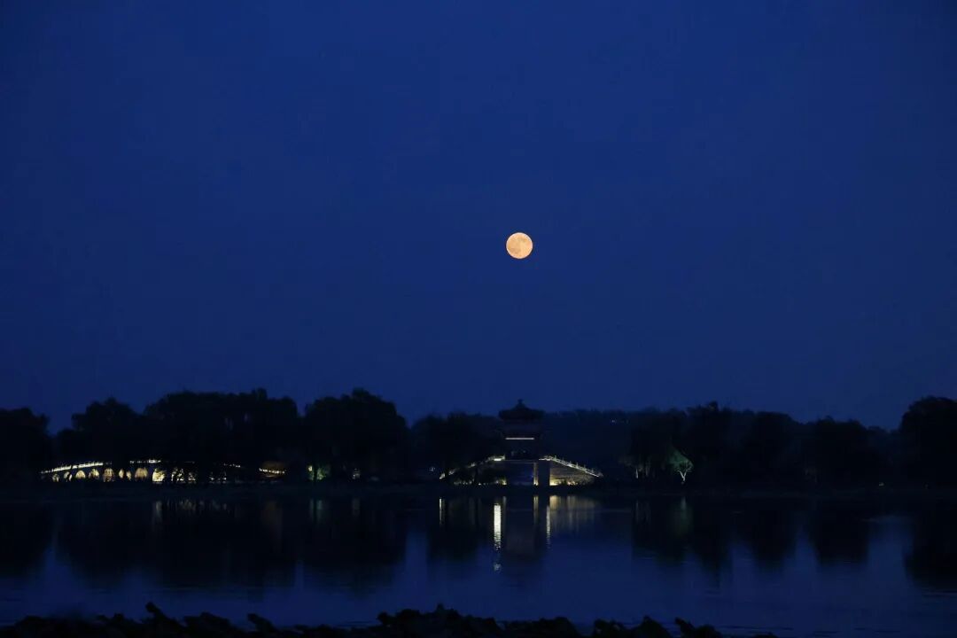 2025年10月7日,北京颐和园,古建筑与满月同框。据了解,2025年最大的两次近地点满月将发生在11月5日和12月4日。中国天文学会会员、天文科普专家修立鹏介绍“这两次近地点满月的视直径,几乎都达到了34角分,如果非要分个第一第二,11月的‘超级月亮’最大”。