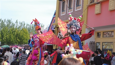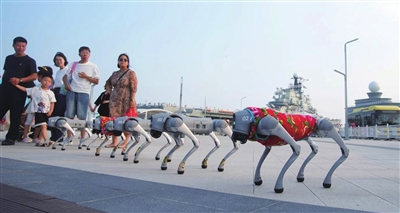 与此同时,一股强劲的“国潮风”也在公园内劲吹,为硬核的军事主题增添了浓厚的文化韵味。国内首创神话主题偶剧《神兽萌动奇遇记》华丽登场,四大神兽携使者天团与游客零距离互动,开启穿越千年的国风狂欢;非遗高跷木偶剧《凤鸣蛇舞》大胆颠覆传统,3米巨偶搭配扎染醒狮头,带来强烈的视觉冲击;《幻彩巨龙秀》中,6米高机械巨龙腾跃喷云,以现代科技唤醒千年龙魂;《赛博机甲秀》则巧妙融合工业美学与街头戏剧,4米高机械巨偶天团诠释着独特的赛博东方浪漫。从文化商业街每日上演的近百场街头互动表演,到科学魔法秀中徒手驭烈焰、空气炮轰鸣的奇妙瞬间,再到萌宠IP“吉福、抱豹、妃妃”的空降问候,国庆中秋期间,即便在降雨的情况下,泰达航母也用总计540余场的各类国潮非遗演出,确保了游客体验的丰富性、互动性与满意度。