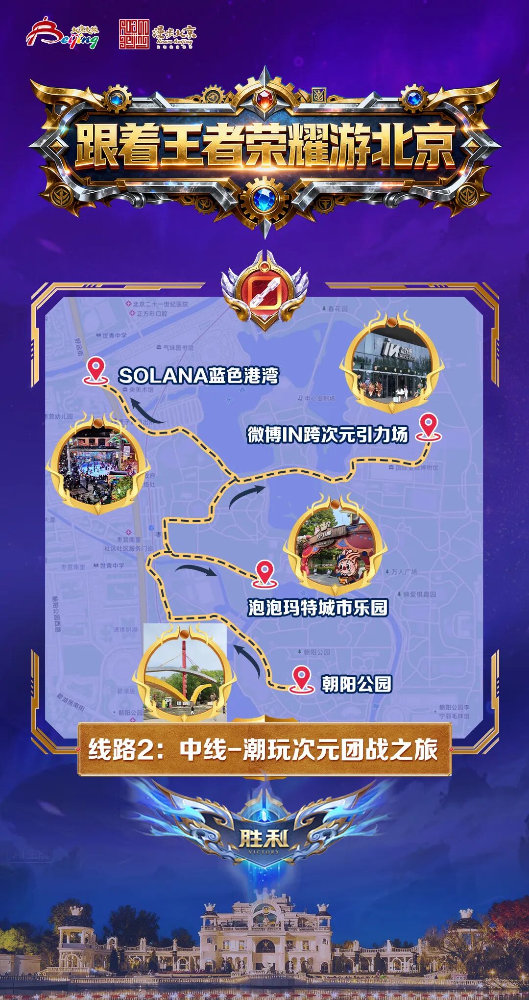 线路行程:朝阳公园→泡泡玛特城市乐园→微博IN跨次元引力场→SOLANA蓝色港湾