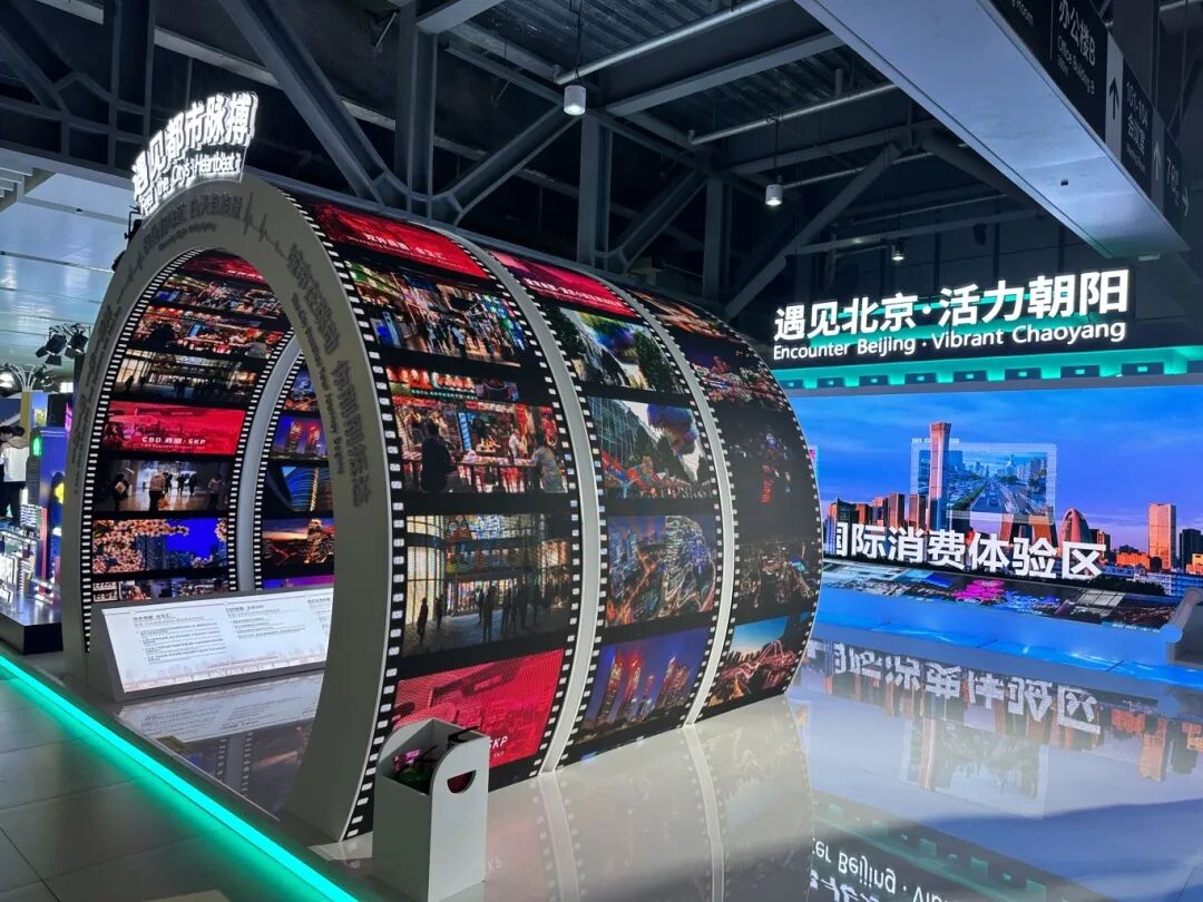 在本届进博会上,北京展区占地360平方米,重点聚焦朝阳区,以“遇见北京·活力朝阳”为主题,紧密围绕朝阳区“一纵一横一核”的消费空间发展格局,通过前沿的沉浸式设计,打造了一幅可步入、可感知的“国际消费中心城市主承载区立体画卷”,多维度展示了北京市国际消费中心城市建设的生动实践。
