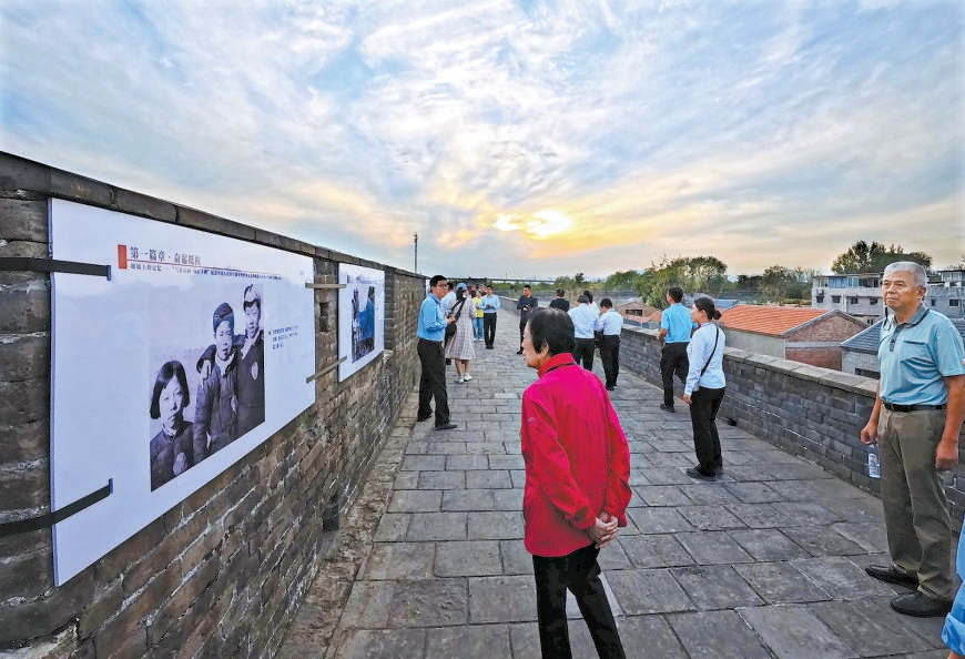 的确,打造宛平博物馆之城,丰台文旅集团充分利用城内空间,拓展文博功能。在城墙上,北京首个以古城墙为背景的主题摄影展——“城墙上的记忆——‘气壮山河·伟大丰碑’纪念中国人民抗日战争暨世界反法西斯战争胜利80周年主题摄影展”正在展出。109幅定格历史瞬间的珍贵老照片,再现了从“七七事变”爆发到中国人民最终赢得抗战胜利的壮阔历程,照片与身后的城墙相互呼应,形成了“历史与现实对话”的独特观展体验。