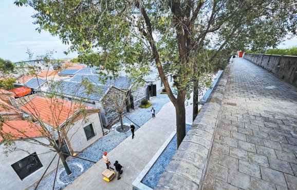 城门楼南侧,曾经被民房阻断的空间如今已经打通,不仅亮出了城墙,还形成了一条环城道。你可以顺着城墙根儿走下去,右侧是巍巍的城墙,诉说着时光的沧桑,左侧是刚刚修缮打造的城墙下空间,各具特色又与城墙相映生辉的房屋,还有绿地、小广场、露台……你能想到未来这片区域的市井烟火气和那份惬意。