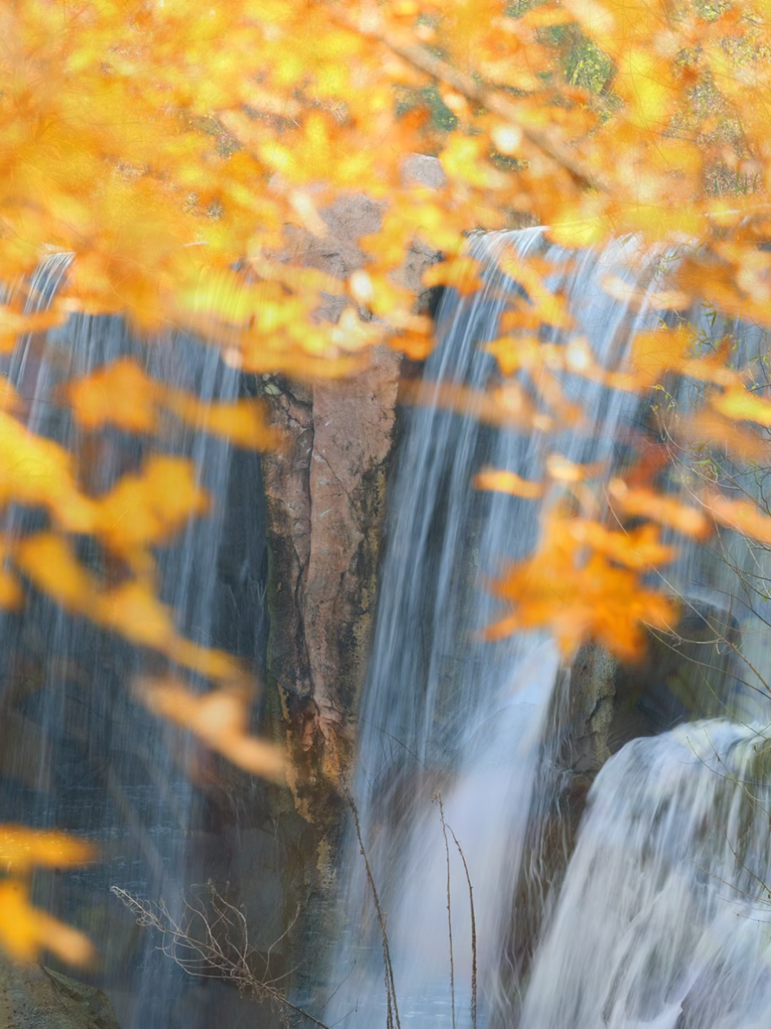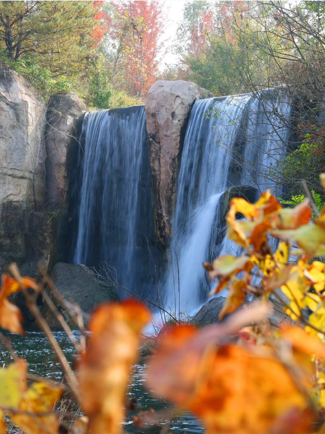 在飞瀑叠翠处,赏瀑布流水与红叶交相辉映,水汽氤氲之间仿佛步入秋日仙境,阳光透过朦胧的水汽,洒下细碎的光影如梦似幻。