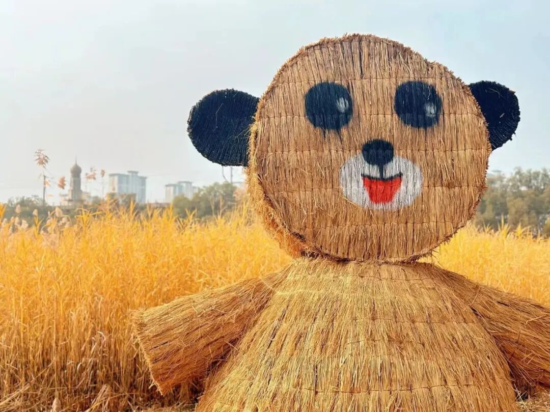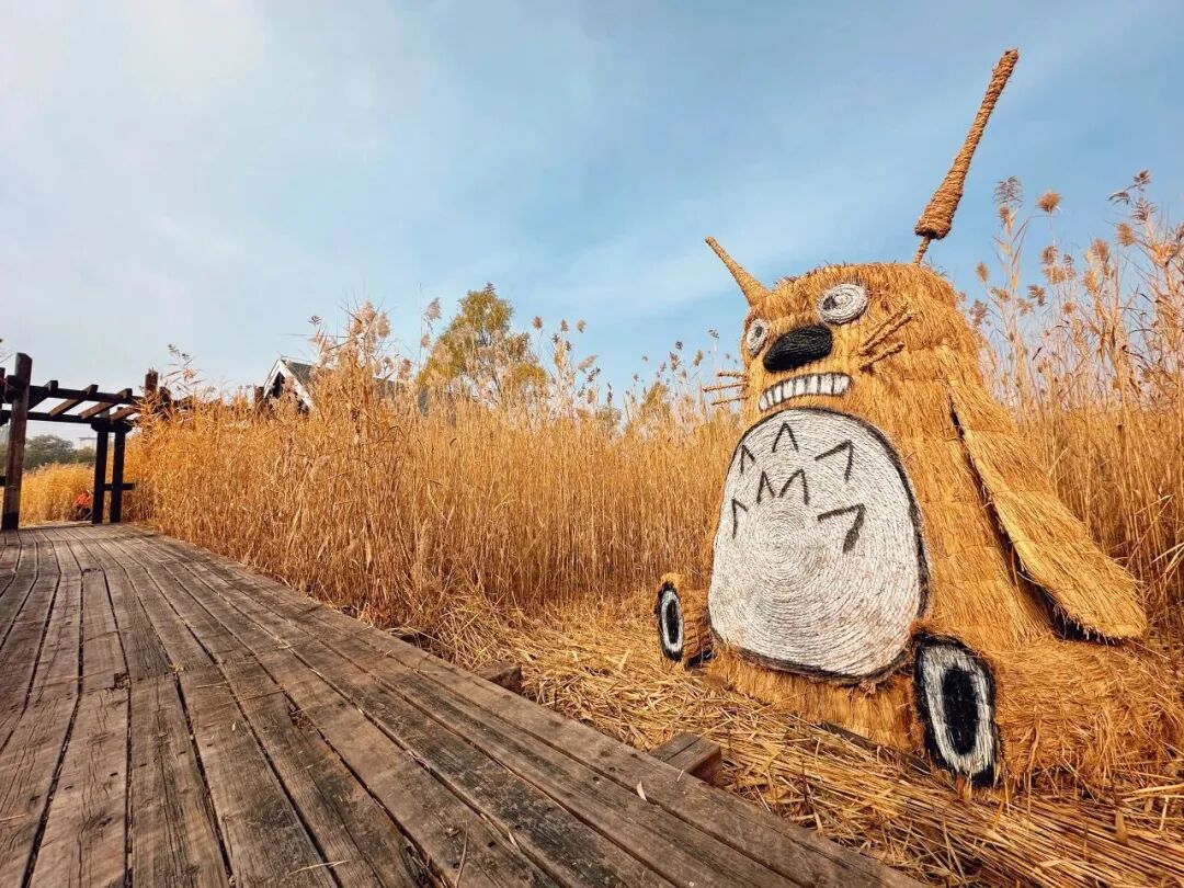 2025 年11月1日至16日“叶舞园博・藤编奇遇” 彩叶节期间,来园博园湿地栈道漫步,可以看到金黄色的芦苇从中,五组造型各异的大地艺术装置悄然伫立:5.4米高的 “仰望湿地稻草人” ,3米高的“金刚兄弟”,还有憨态可掬的“耙耳熊” ,软萌可爱的“龙猫”舒展触手的“章鱼”。