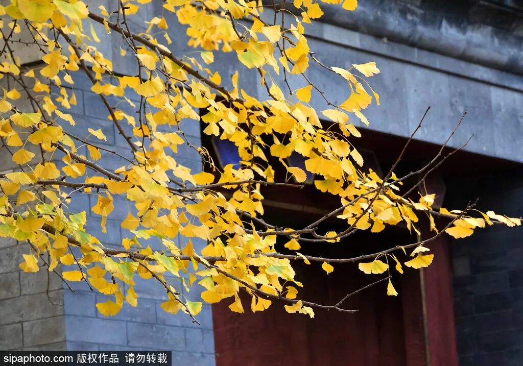 这里生长着北京乡土树种大果榆,进入秋天,叶片呈现出橙黄色、棕红等丰富色彩,在古建上点缀着绚丽的秋色,相映成趣,可在树下或游廊内观赏。