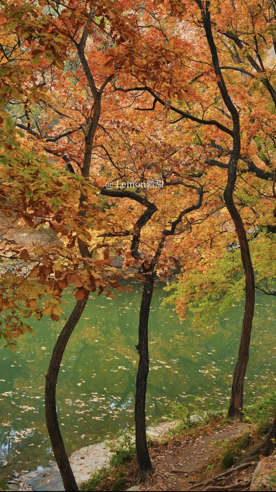 每至深秋,斑斓的叶色与秋日的阳光映在河面,景色优美宜人。