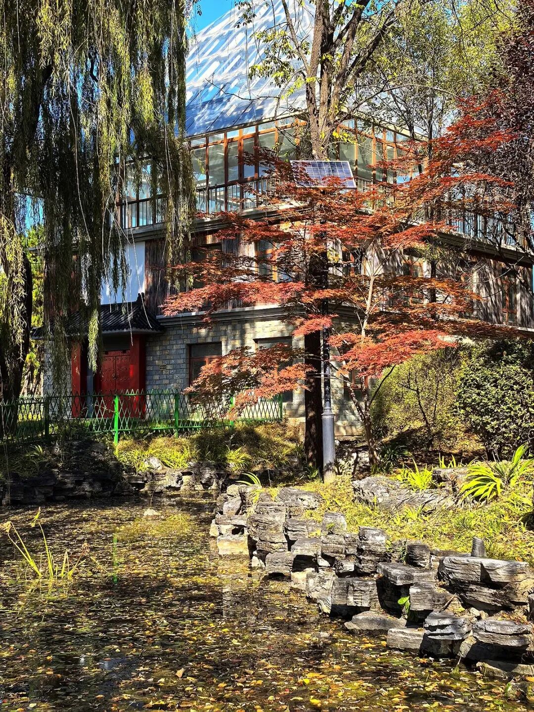 来到后湖区域,可以欣赏到银杏、白蜡、柳树、元宝枫等多种秋色叶树种。