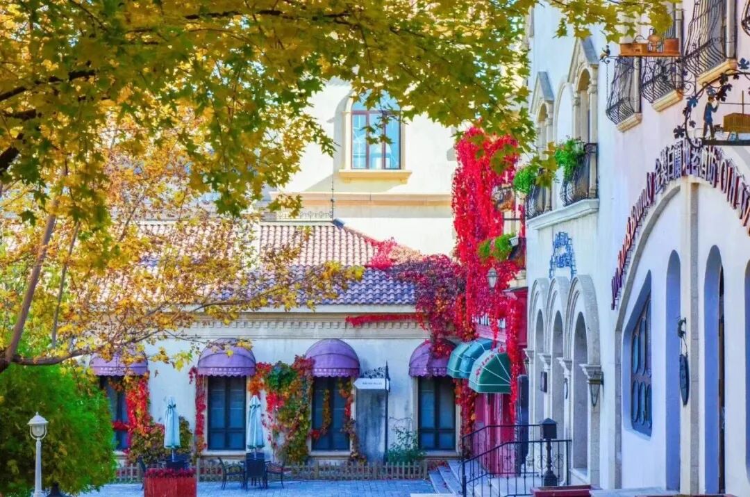 当枫叶漫成金浪,爬山虎缀满红墙,城堡的尖顶映着斑斓彩叶,红墙与黄枫相映成趣,漫步欧洲风情街区,教堂的浮雕、欧式的窗棂都爬满红透的藤蔓,仿佛瞬间穿越进《玫瑰的故事》里的浪漫场景,趁风景正浓,来复刻黄亦玫的心动瞬间吧~