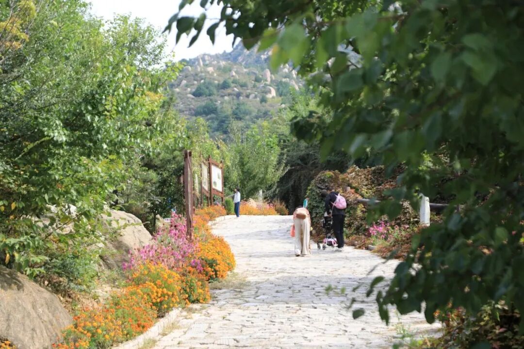 沿着邑仕山谷的小路缓步向上,抵达壹号观景台,眼前豁然开朗,密云水库在阳光下泛着银蓝光,如同被群山托起的“京郊海”,秋风一吹,让人内心瞬间开阔。