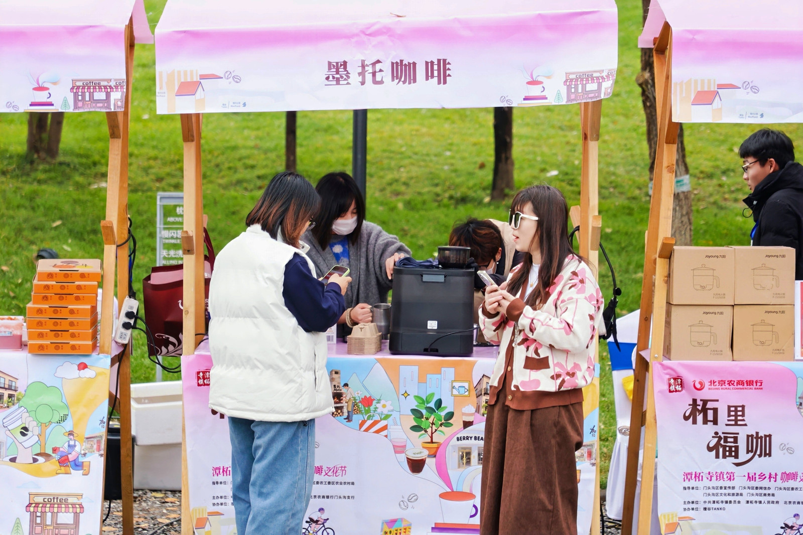 值得关注的是,为进一步推广“咖啡文化小镇”品牌形象,活动现场特别设立了咖啡品牌市集。市集汇聚多家代表性咖啡品牌,通过品鉴、售卖、文创展示与手作体验等形式,多维度呈现咖啡文化的独特魅力。从咖啡豆的产地故事、烘焙工艺讲解,到特色饮品的现场制作与拉花表演,丰富的互动体验吸引了大量游客和居民驻足互动、拍照打卡。多家品牌还融合了潭柘寺镇文化元素,推出具有地方特色的联名产品,既提升了产品附加值,也实现了地域文化的创新传播。市集不仅为品牌提供了直面消费者的展示窗口,也为打造“北京市首个咖啡文化小镇”营造出浓厚的文化氛围。