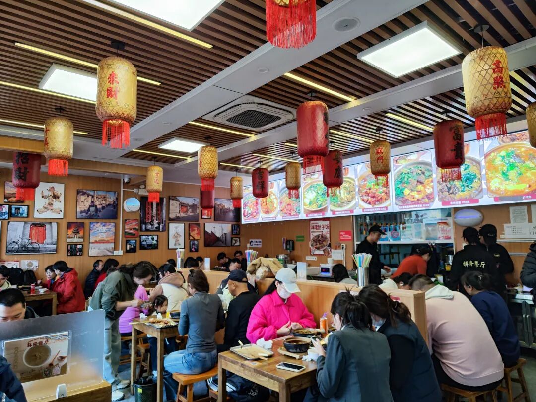 对门的祥隆餐厅是另一家人气小店。每天限量30份的肘子饭,肘子炖得软烂脱骨,搭配蘸料解腻,分量很足,两三个人吃一份也足够。招牌的烫饭用料丰富,米饭吸满了汤汁的精华,搭配西红柿鸡蛋牛肉、辣椒炒肉、肉末小白菜等配菜,暖胃又暖心。店内面积不大,但环境干净整洁,除了附近居民,还有不少外地游客慕名而来,逛完天坛公园来到这里,想尝尝属于北京的烟火气。坐在店里听着来自五湖四海的南腔北调,别有一番意趣。