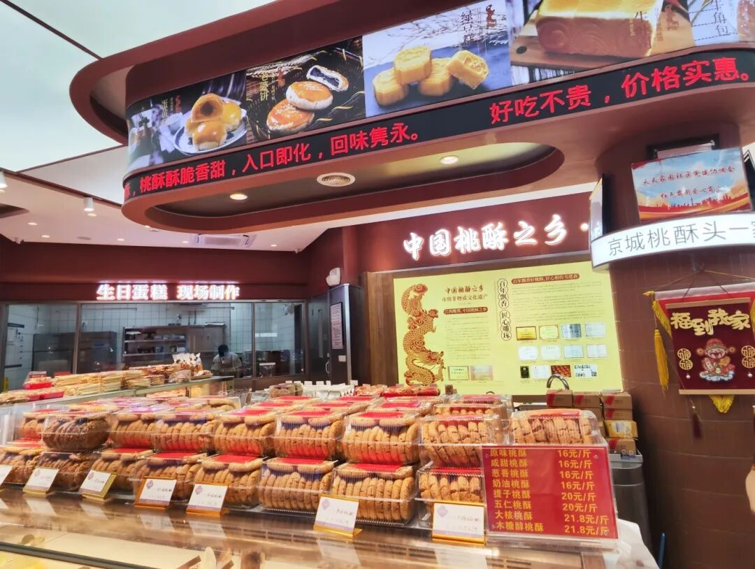 距离永定门外站东南口不远的沙子口路上,两家驻扎永外多年的美食小店并肩而立。走进缘赵记,总能看到不少几十年的回头客。热气腾腾的蒸笼里摆着皮薄馅大的包子,咬一口,汤汁瞬间在口中爆开,搭配一碗油亮酱红的炒肝,便是地道的老北京滋味。隔壁的韦老俵桃酥王也已经开了二十多年。刚出炉的桃酥金黄酥脆,轻轻一碰便簌簌掉渣,甜而不腻。还有香酥的拿破仑、咸香的牛舌饼,是不少永外人的舌尖记忆。