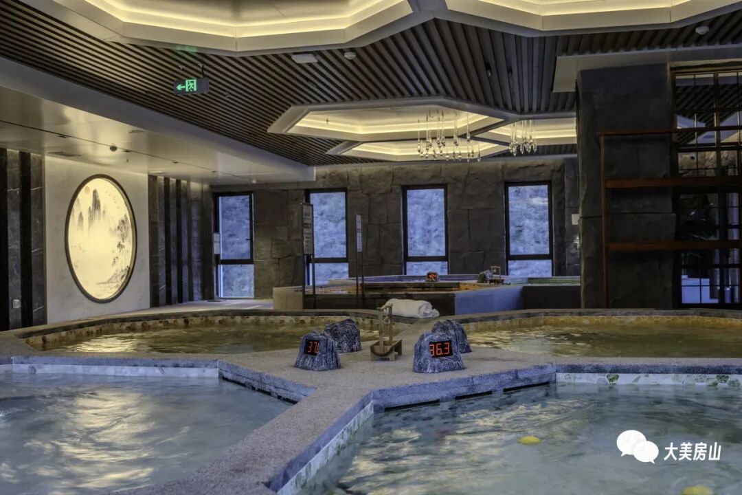 以“天然疗愈”为核心的汤泉中心,涵盖四大特色区共41个泡池。重点打卡户外无边泡池“览山台・云汤”,山影映汤泉、云雾绕肩头,沉浸式感受“人在景中泡,景在汤中现”的浪漫。