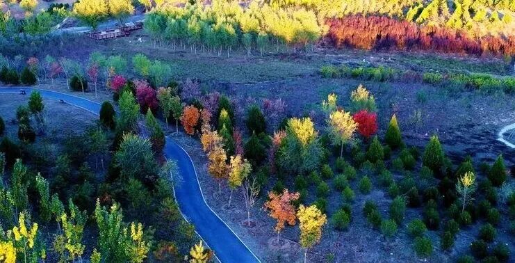 在“情人码头”“林云观玉”“栖霞绚秋”“公孙祈福”等景点皆可以看到大面积彩叶树,色彩绚丽,景色宜人。