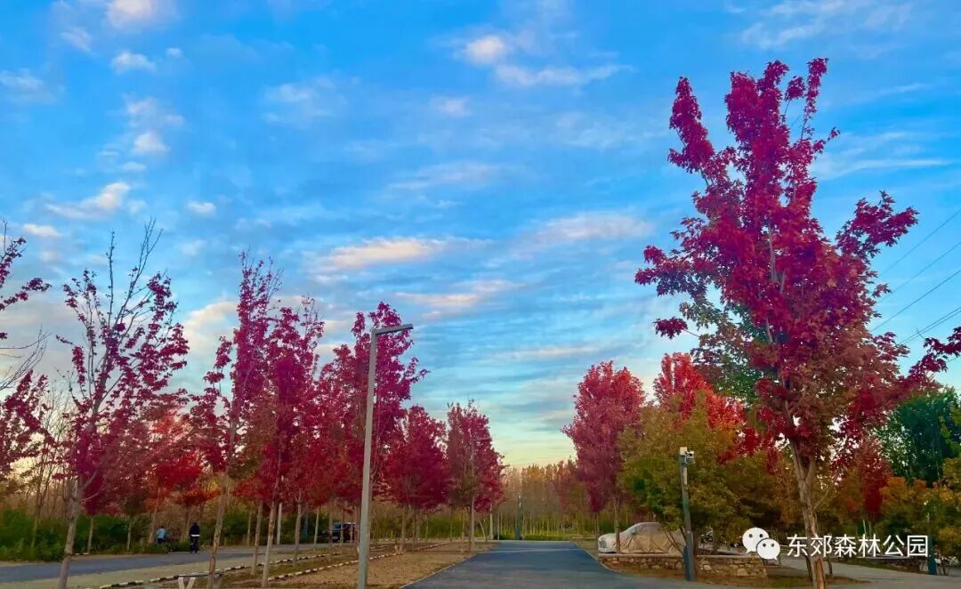 秋意正浓,景色如画,通州东郊森林公园,彩叶树仍在最佳观赏期,成片的枫香林、元宝枫,正在展现它们最美的模样,宛如大自然精心描绘的调色盘。